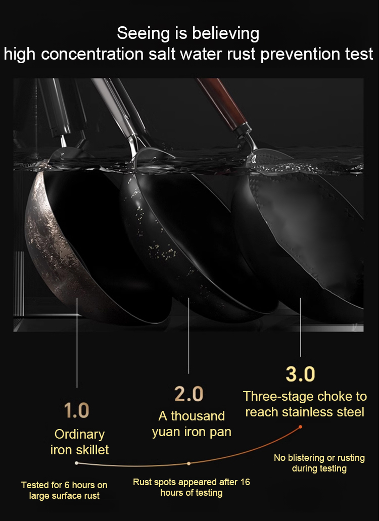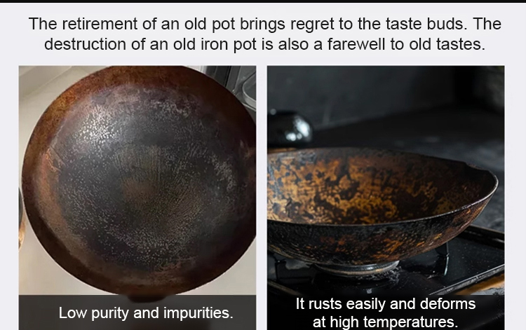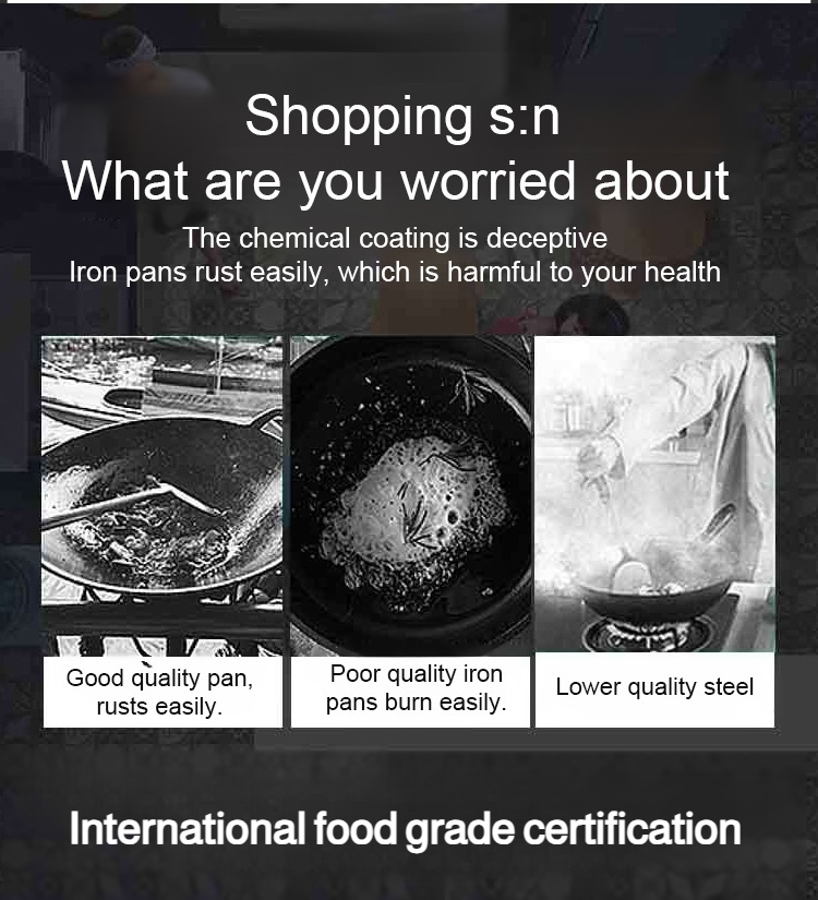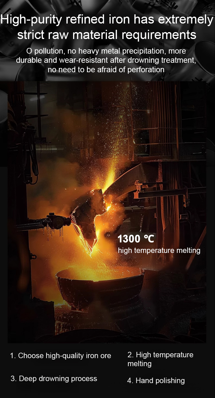 👍The product is handmade by craftsmen in Birmingham. 99.99% is made of high-purity iron, without coating, and will not release harmful chemicals to food. In addition, it can also supplement the iron required by the body, treat anemia, and control blood sugar.