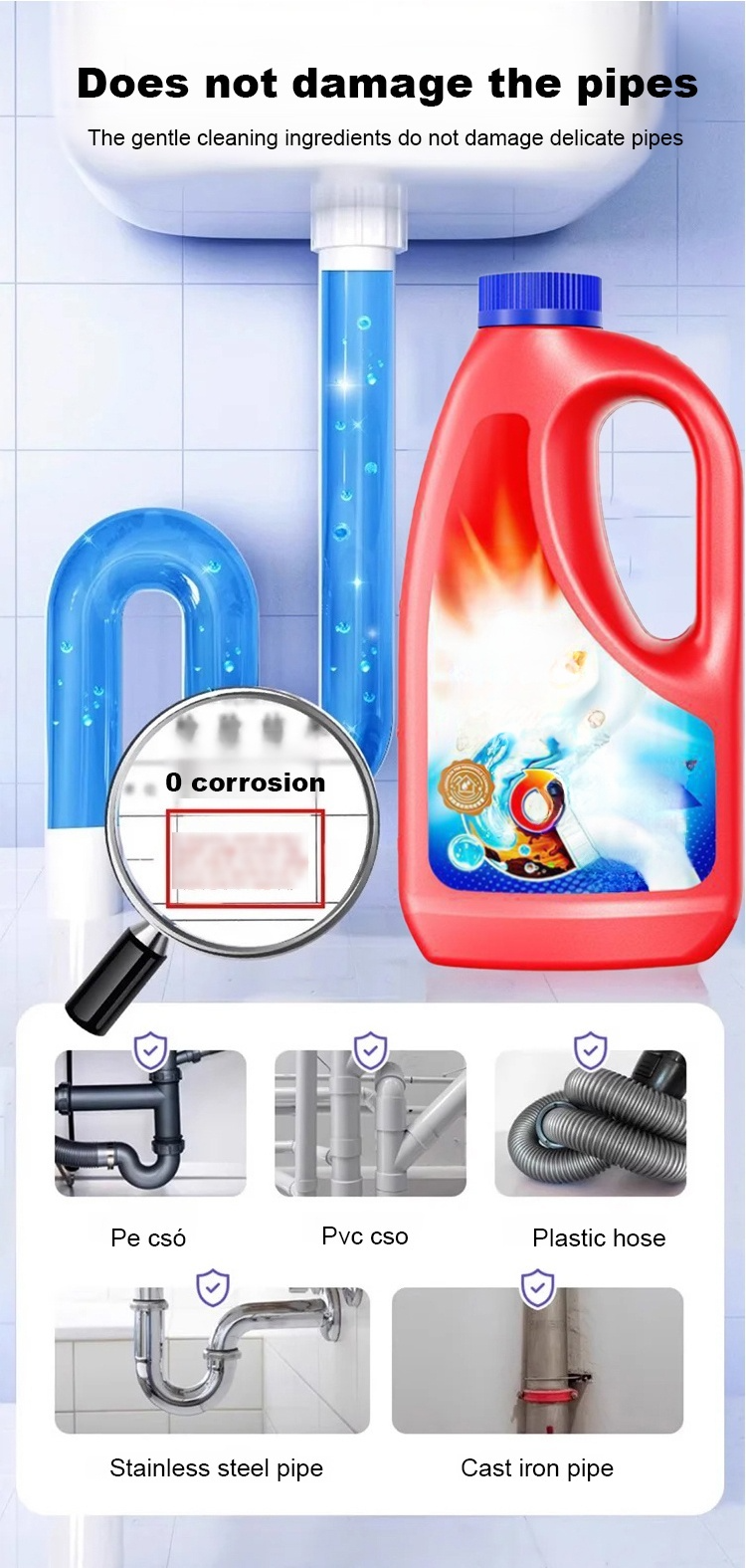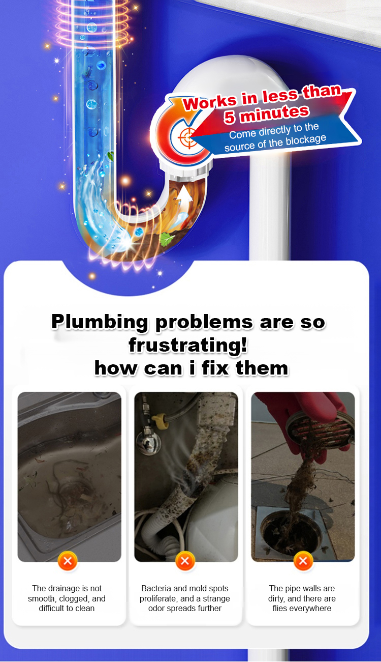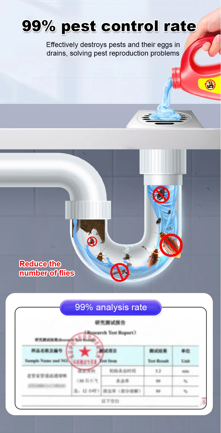 ✅Clears 5 meters of clog in just 3 minutes! One bottle delivers 5 powerful benefits: unclogs, deodorizes, repels pests, disinfects, and protects pipes.