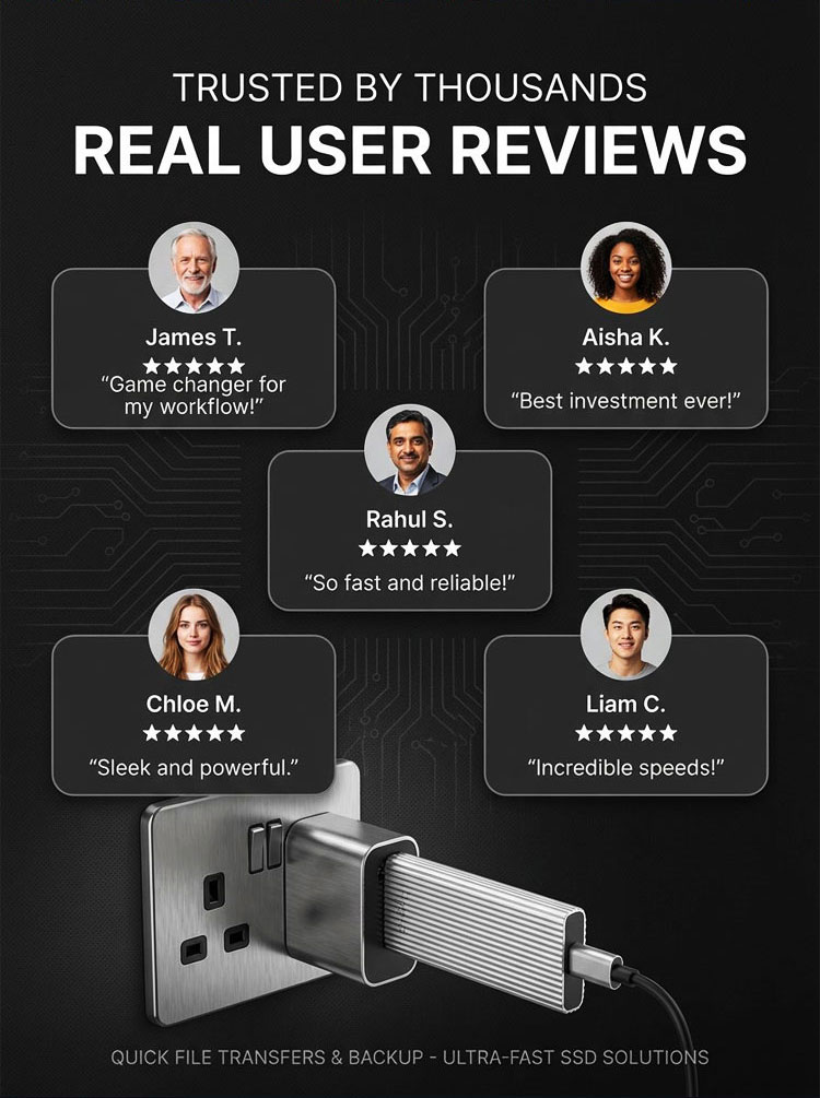 ⚡ Blazing 1,000 MB/s Speeds – Transfer a 2-hour 4K video in just 3 minutes!